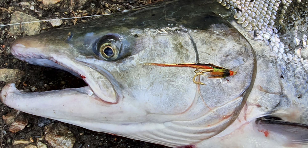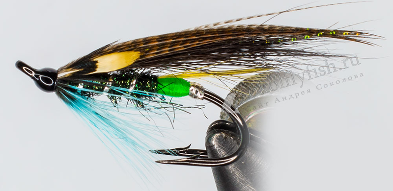 Мушка Green Butt Blue Variant. Хорошо работает по свежезаходящей из моря рыбе по прозрачной малой воде.
