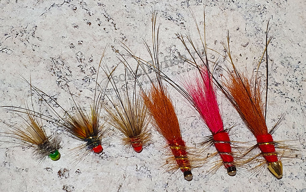 Мушки в стиле Willie Gunn для малой воды, двойной крючок №4-10, верхний вариант в мелких размерах очень хорошо работает по малой воде в солнечную погоду, нижний вариант универсален в условиях второй и малой воды. Проводка может быть разной, как на снос, так и поперёк реки со стрипами.