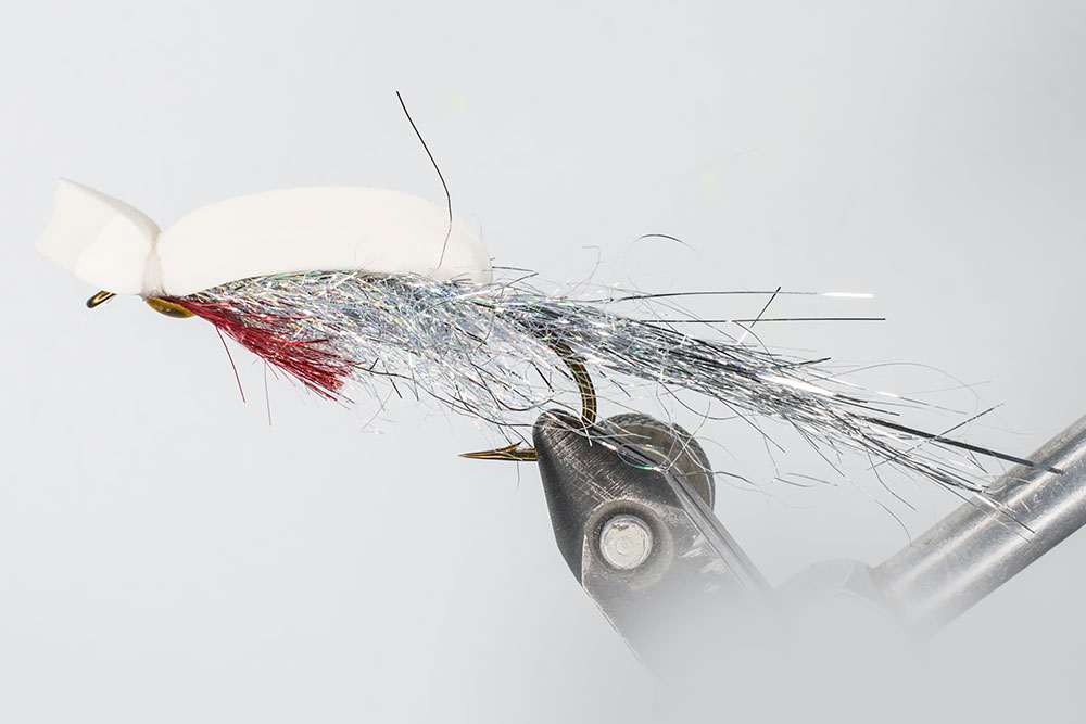 Surfboard. Изначально эта мушка была обычным стримером SuperTinsel для ловли кумжи, потом с помощью пенки, привязанной сверху, добавилась её бороздящая модификация; и только позже выяснилось, что такие мушки привлекают сёмгу не меньше, чем кумжу. Проводка может быть такой же разнообразной, как и при использовании мушки Skater. Вязал В. Луганский