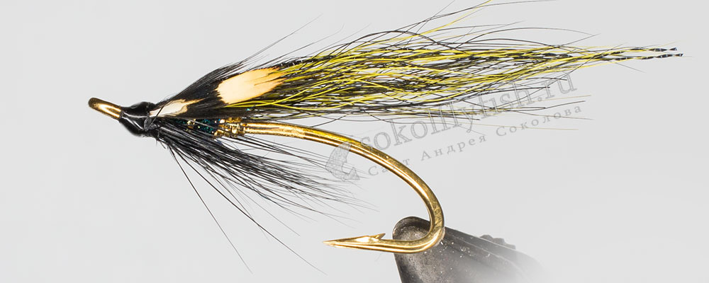 Очень близким родственником Willie Gunn является очень популярная мушка Golden Killer, имеющая в крыле смесь жёлтого и чёрного меха, эта мушка изготавливается на крючках с золотым покрытием. Я люблю её в исполнении на золотом одинарнике, однако, большинство заказчиков почему-то предпочитают двойник. Кстати, ближайшим аналогом этой мушки можно назвать и относительно новую мушку Banana, исполненную на трубке в грязно-жёлтых тонах.