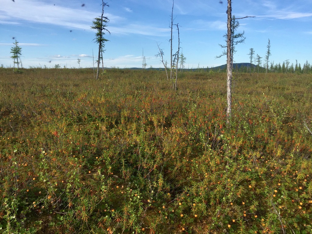 Решили сделать дневку и посетить приток, на котором еще не кто до нас не ловил рыбу. По пути попадались полянки морожки и поля голубики.