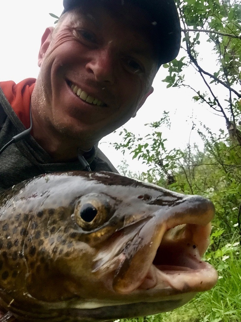 Т.к. мой напарник часто отставал, то пришла идея делать селфи с рыбой. Вот такой милый ленок.