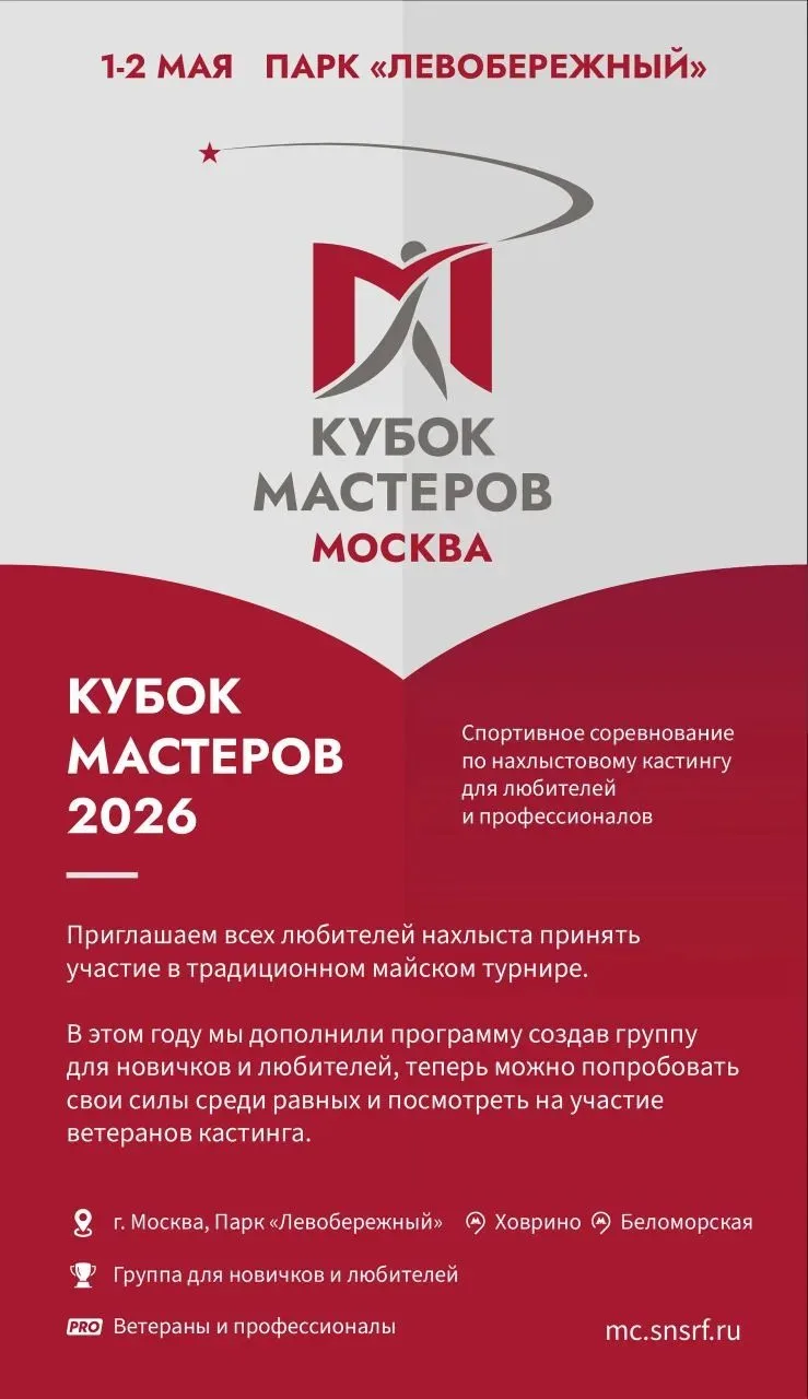 Друзья, напоминаем всем тем кто любит нахлыст! 1-2 мая в парке отдыха Левобережный пройдут соревнования по нахлыстовому кастингу - Кубок Мастеров 2026.
