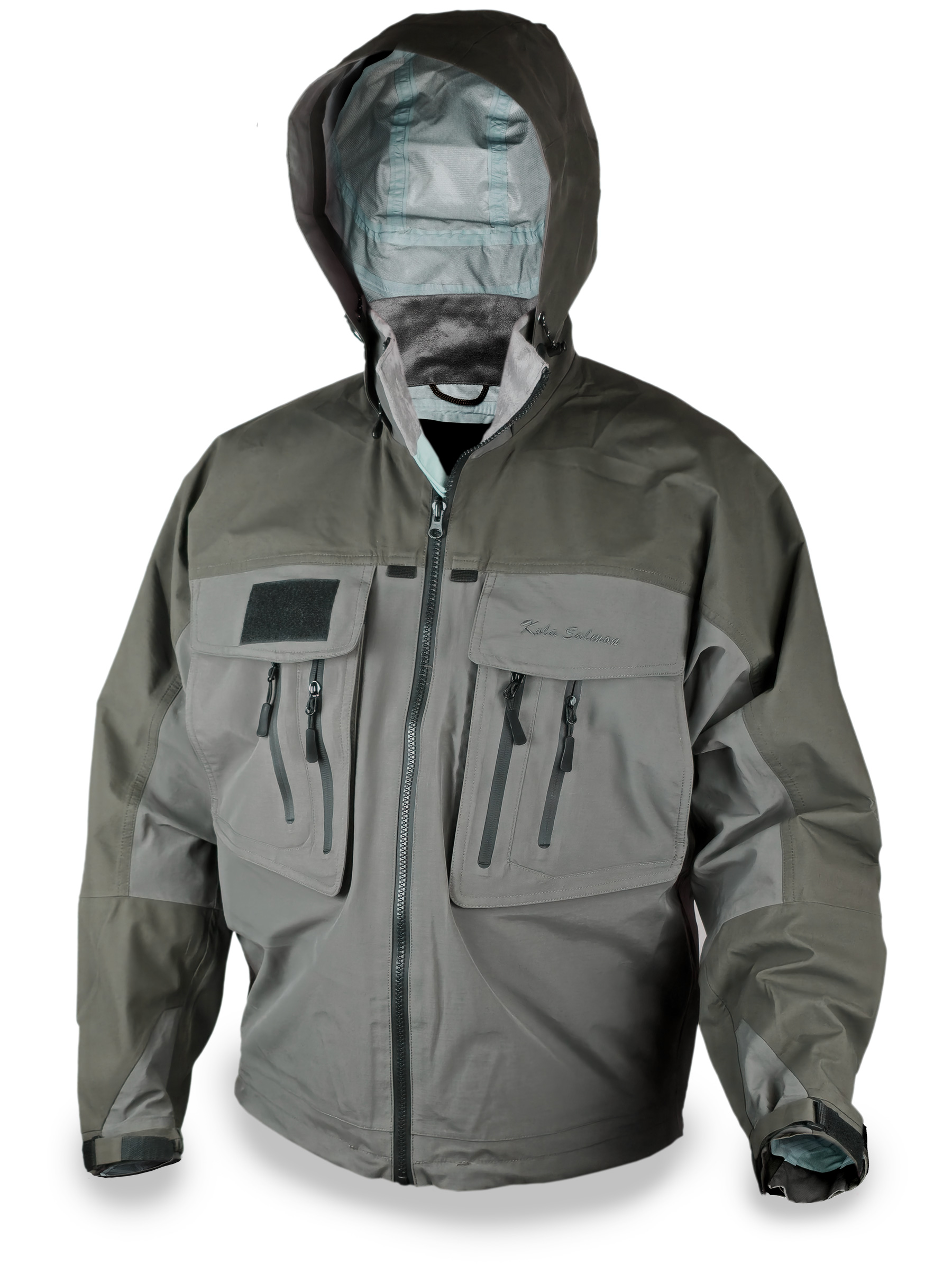 ВСЕСЕЗОННАЯ мембранная забродная рыболовная куртка с "классическими" конструктивными особенностями: два объемных вертикальных кармана для коробок с приманками, инструментов с клапанами на липучке, что позволяет оперировать ими, стоя в реке или в лодке.