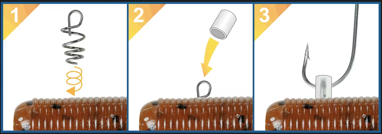 Пружины из нержавеющей стали просто ввинчиваются в силиконовую приманку, что позволяет надежно прикрепить крючок, не повредив искусственный крючок. Подходит для оснастки Texas, Wacky rig и Neko. Очень полезно также наносить на приманку, в желаемом положении, утяжелители, приманочные шары, дополнительные крючки и т. Д. 6 шт.