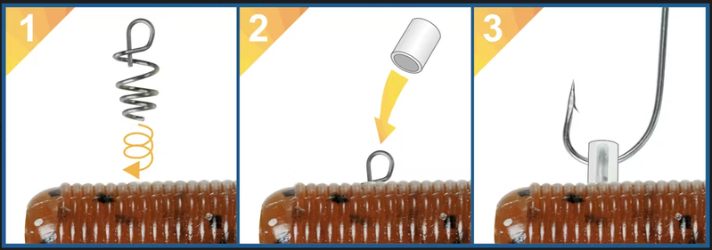 Stainless steel springs, easy to screw in the silicone lure, they allow a secure attachment of the hook without damaging the bait. Ideal for Texas rig, Wacky rig and Neko rig. Very useful for applying weights, attractor spheres or additional hooks in the desired position on the bait.