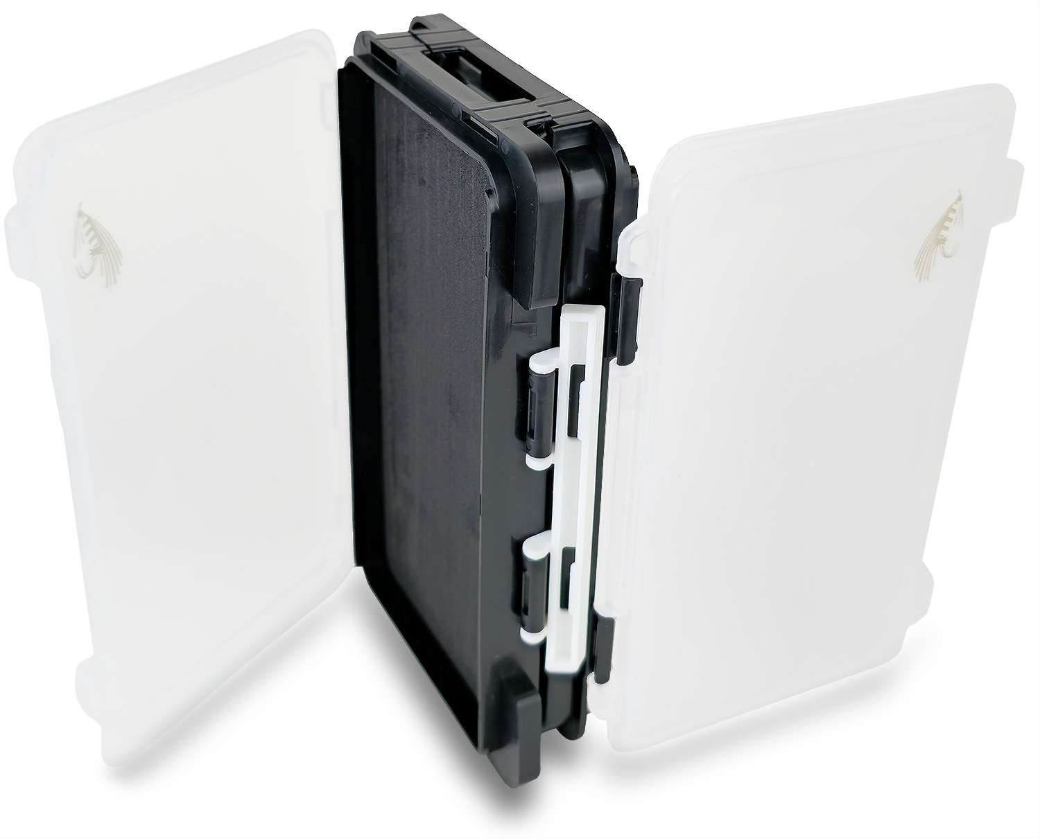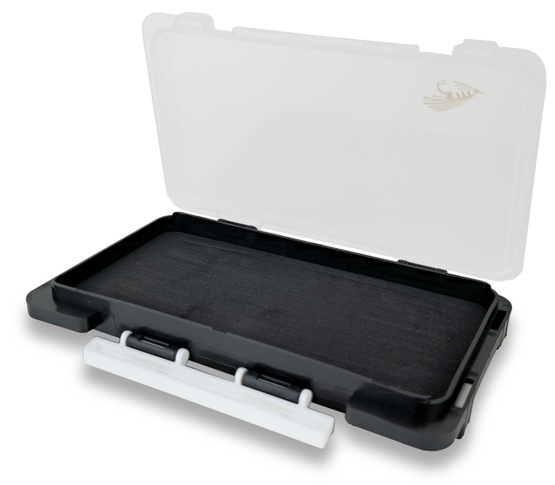 Прорези под мушки проходят по всей длине коробки и позволяют размещать разные мушки в любом удобном вам порядке. Пластик ударопрочный, что предотвращает коробку от сколов при ударах и падении.