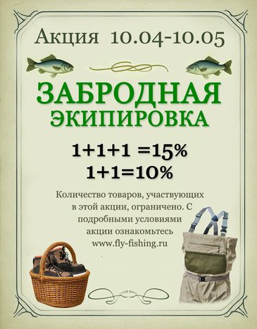 - Компания оставляет за собой право вносить изменения в условия акции, о чем будет сообщено на сайте www.fly-fishing.ru, в разделе Акции.