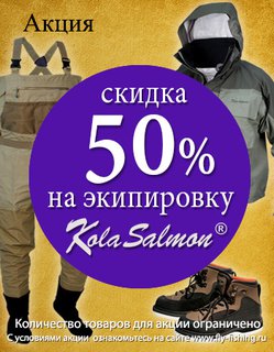 «СКИДКА -50 % на каждый второй товар торговой марки KOLA SALMON из раздела ЭКИПИРОВКА».