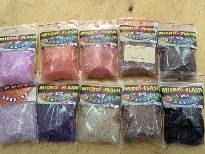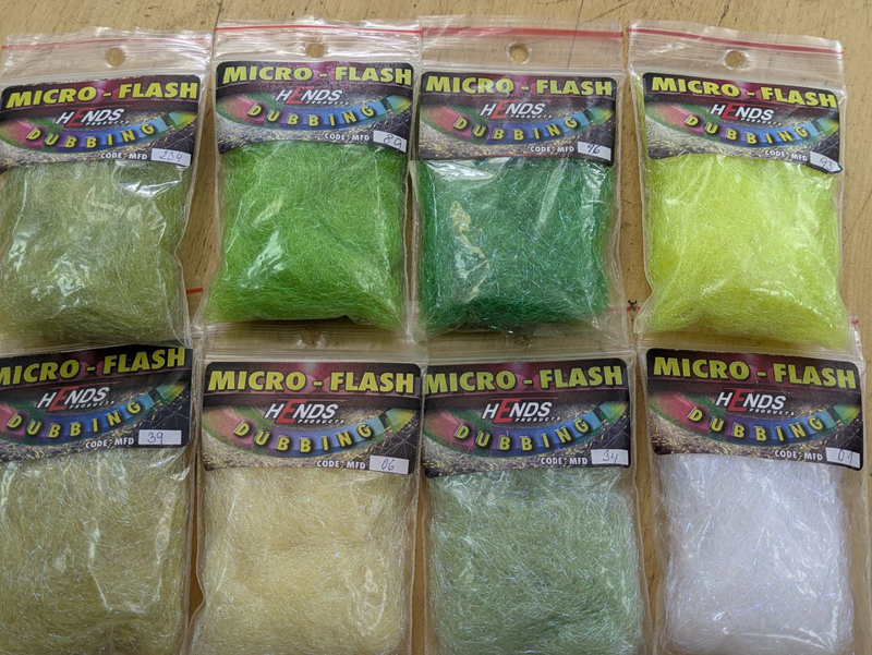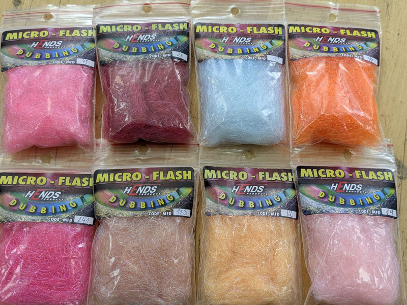 Уникальный материал, изготовленный из очень тонких волокон, способных давать отблеск в ультрафиолетовых лучах. Выпускается, обычно, очень пестрых цветов, и предназначается для вязания мушек для ловли хариуса, радужной форели, голавля, стальноголового лосося. Можно использовать его и как добавку к даббингам из натуральных материалов. Отлично подходит для вязания мушек или элементов мушек: нимф, стримеров, мокрых мушек, лососёвых мушек и др.