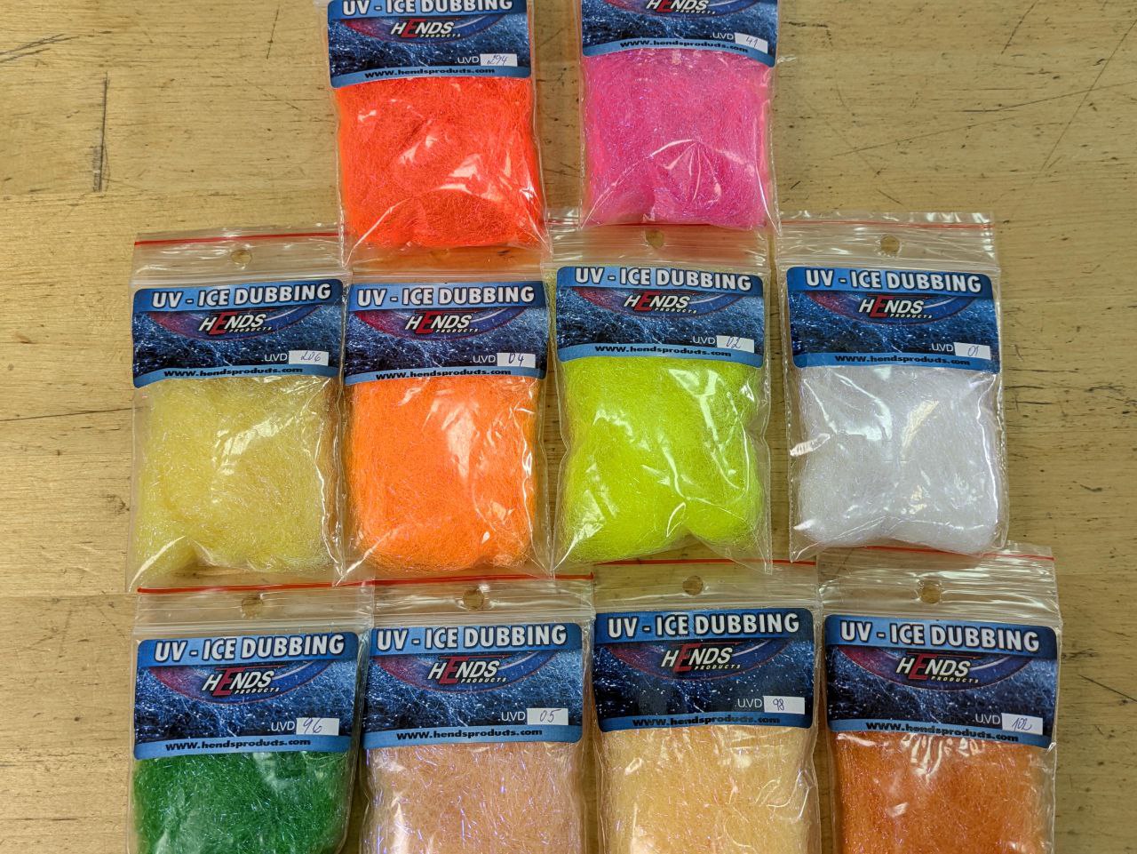 Уникальный материал, изготовленный из очень тонких волокон, способных давать отблеск в ультрафиолетовых лучах. Выпускается, обычно, очень пестрых цветов, и предназначается для вязания мушек для ловли хариуса, радужной форели, голавля, стальноголового лосося. Можно использовать его и как добавку к даббингам из натуральных материалов.