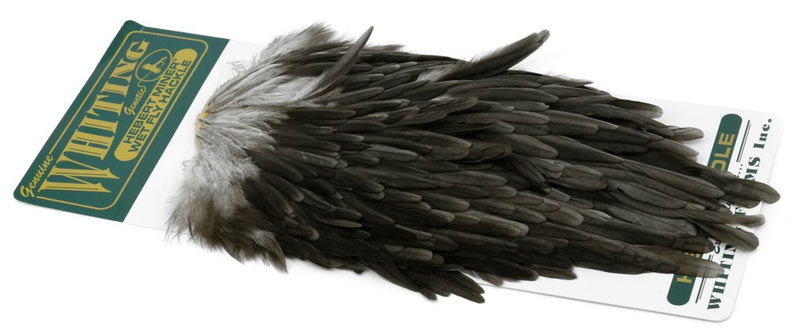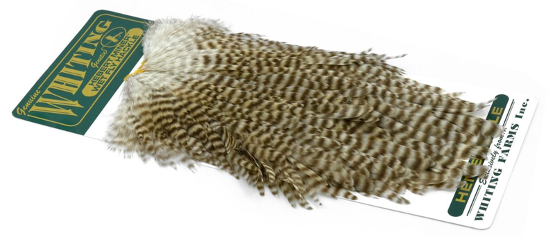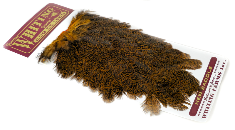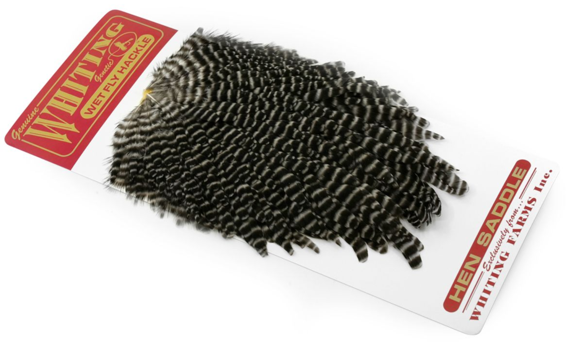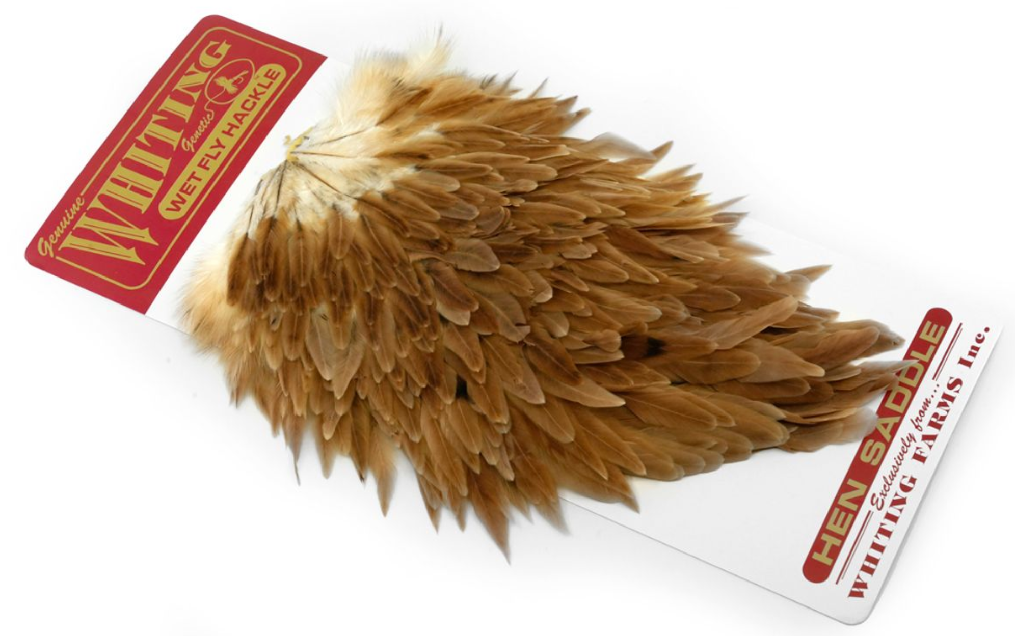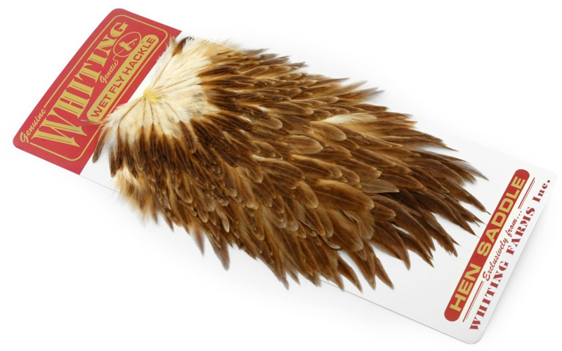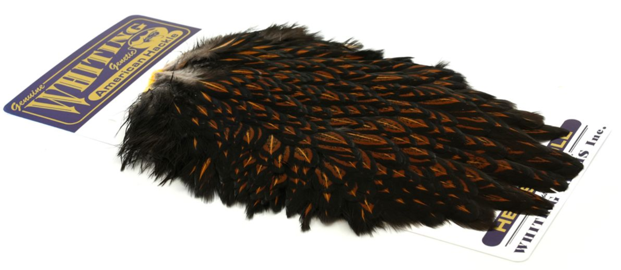 These Whiting Farms Hen Saddles make fantastic wet fly feathers. These long narrow feathers are thinner in than the similar American Hen Saddle. They have fine, sturdy quills for less breakage while tying, and the barbs are sturdy enough to stand up in fast water.