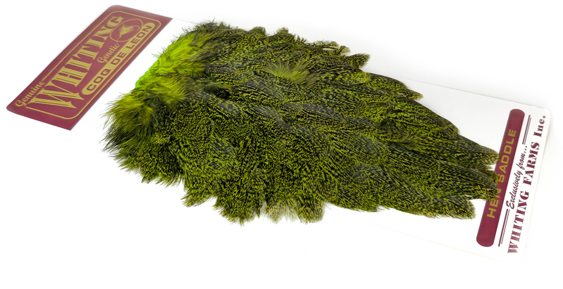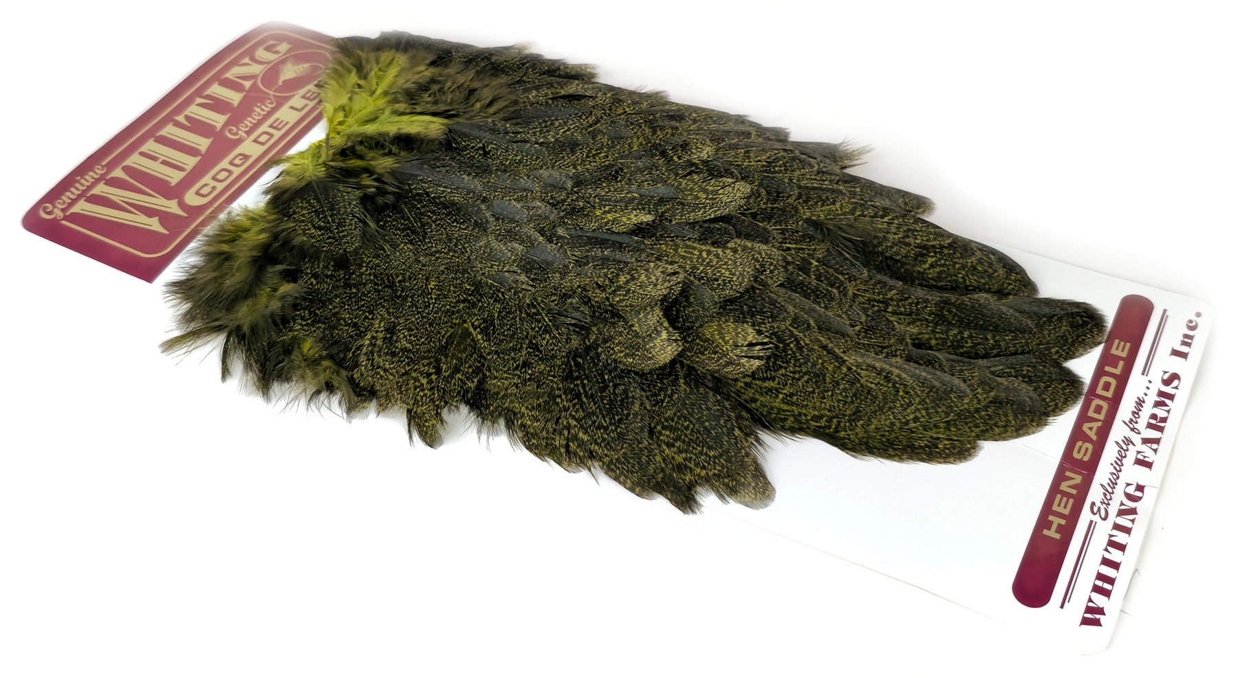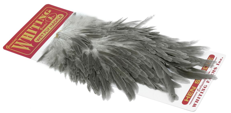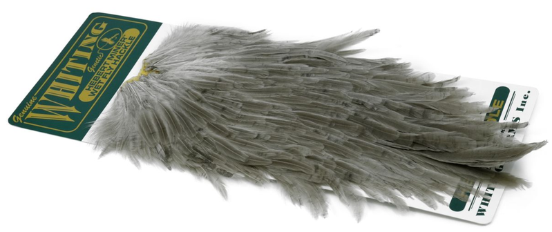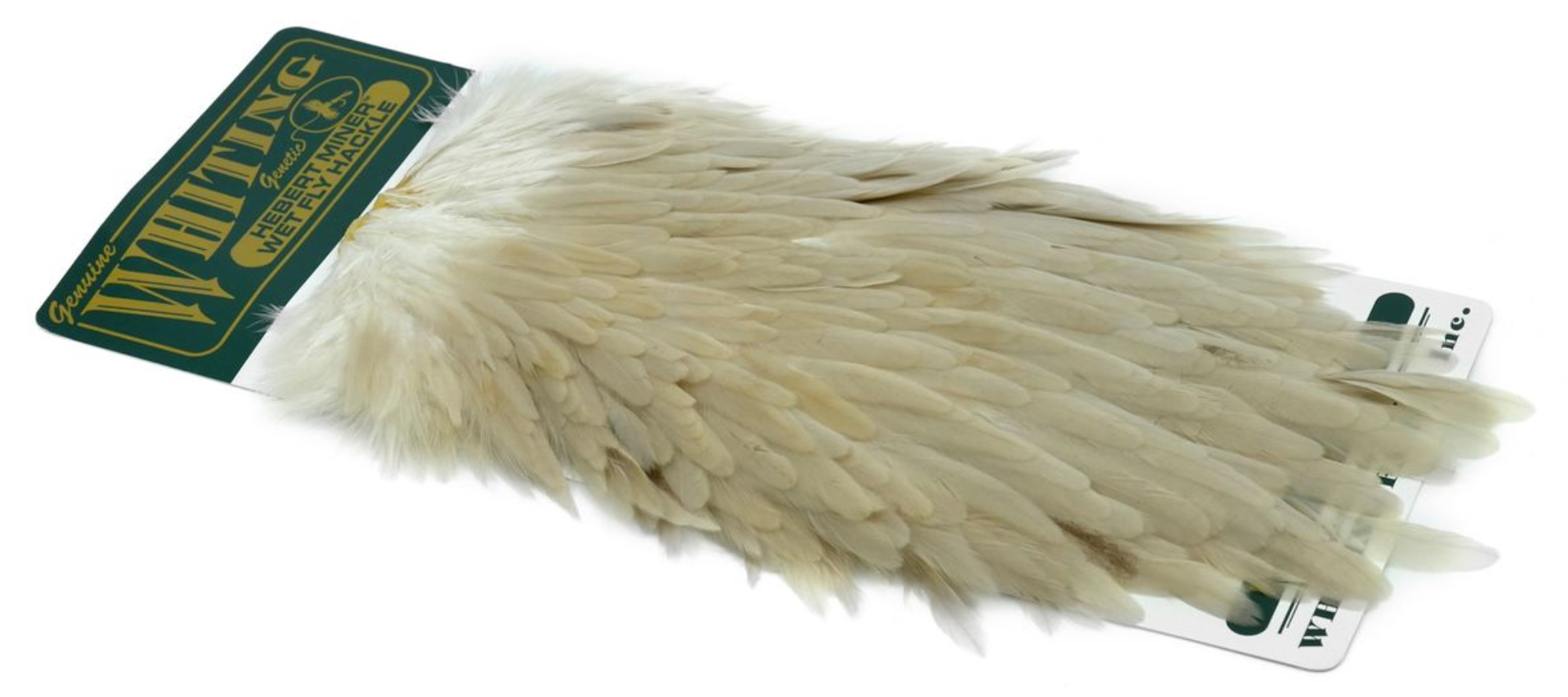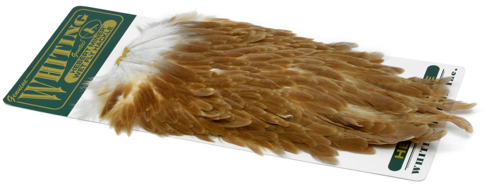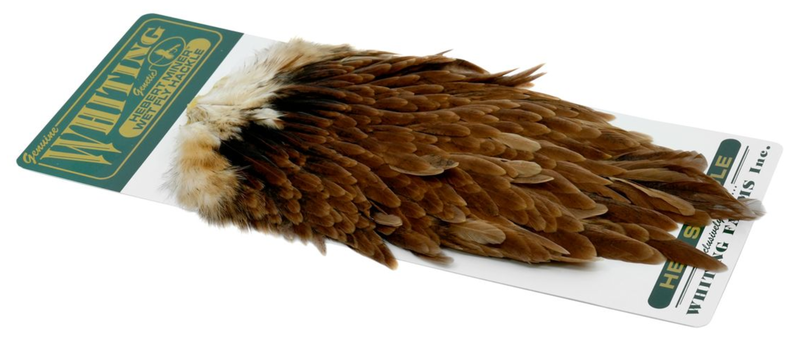 These Whiting Farms Hen Saddles make fantastic wet fly feathers. These long narrow feathers are thinner in than the similar American Hen Saddle. They have fine, sturdy quills for less breakage while tying, and the barbs are sturdy enough to stand up in fast water.