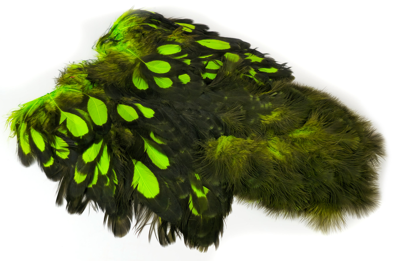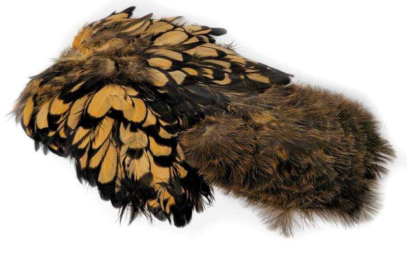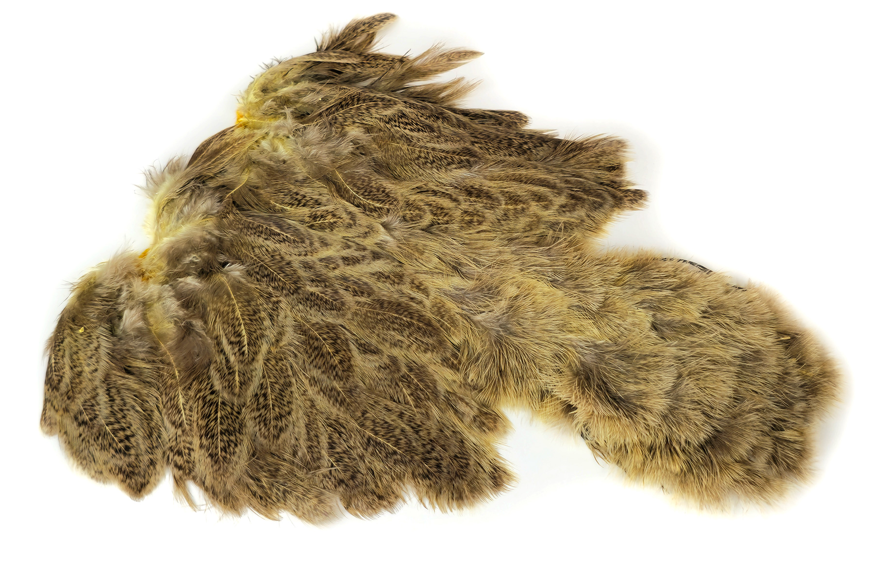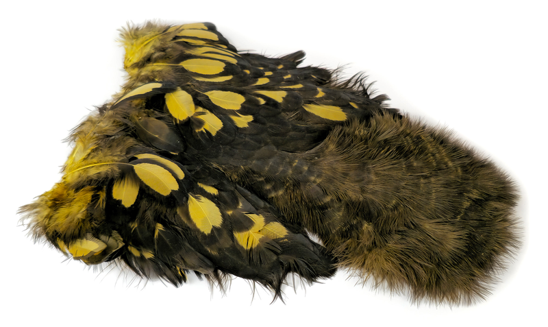 Ничто не сравнится с этими перьями, если нужно связать небольшие мушки в стиле "woolly bugger" . Так называемые matuka-перья в верхней части этих шкур имеют такой же тонкий сетчатый узор, что и на седлах.