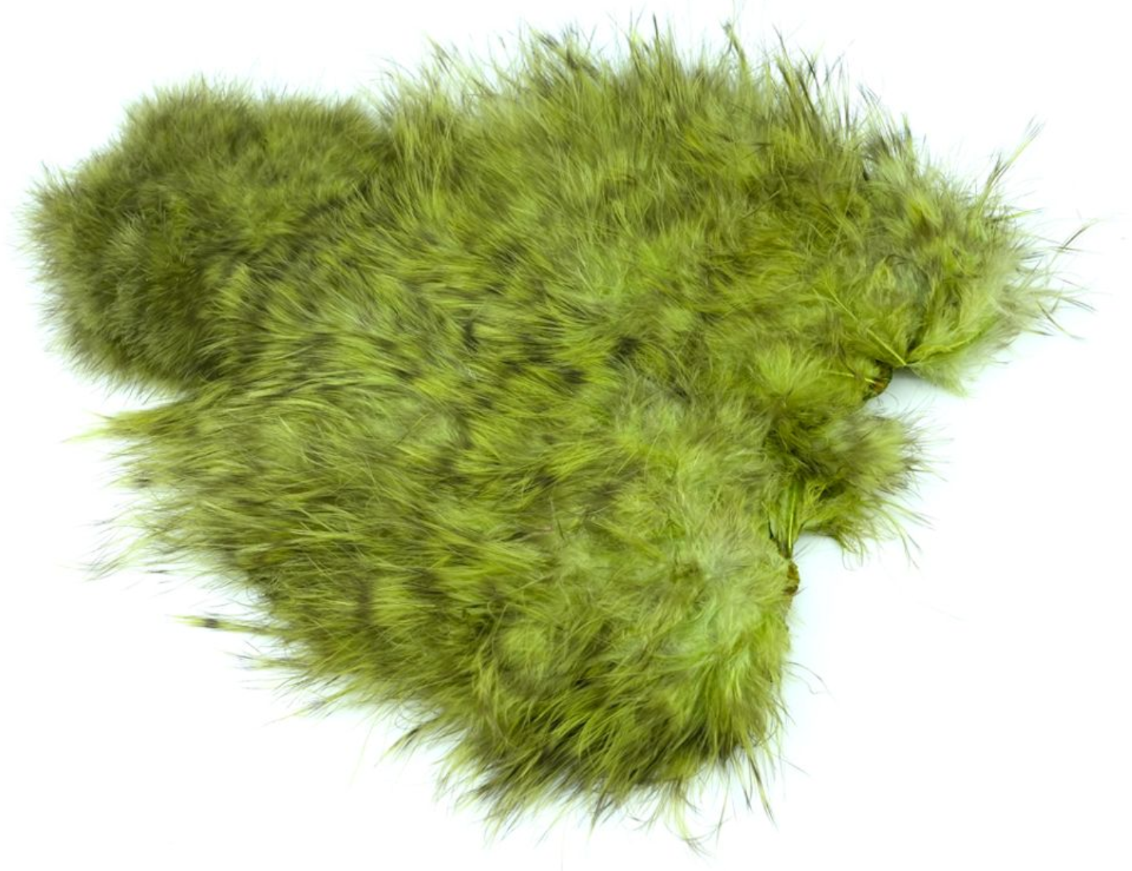 Chickabou: The marabou-like feathers at the narrow end of the pelt are much finer and more delicate than traditional turkey marabou, which tends to be too large and coarse for many flies. Chickabou can be used in two basic ways. Tied in as tails on Wolly Buggers or as body material for incredibly alive, breathing and undulating motion.