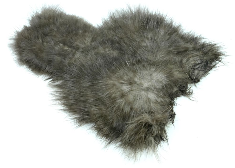 The top portion of the pelt contains two panels of full web, Matuka-type, wet fly feathers. The feathers on either panel are mirror images of one another and so can be paired for balanced opposing sides on the fly. These feathers, when used full, are nideal for Matuka and Sculpin flies. They are also great for shorter tarpon and saltwater flies, full feather bass and panfish flies, and trout flies.