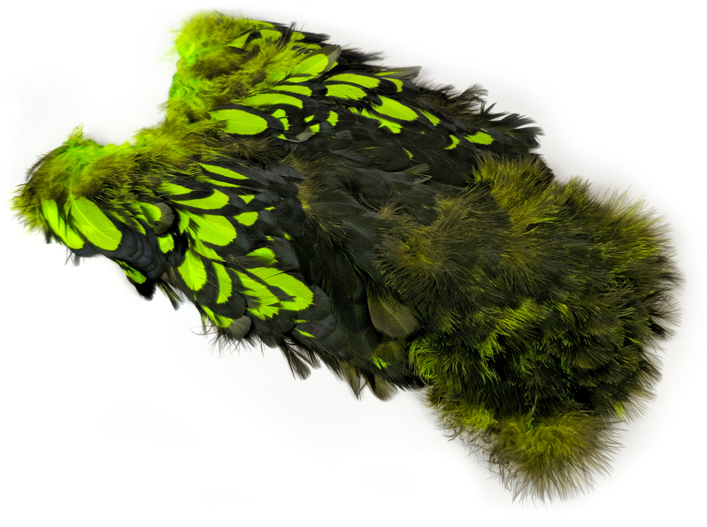Мягкие, пушистые перья покрывают всю шкуру. В то же время большие перья, имеющиеся также в достаточном количестве, Вы будете использовать для вязания лососевых, морских мушек, также мушек в стиле " spey ".