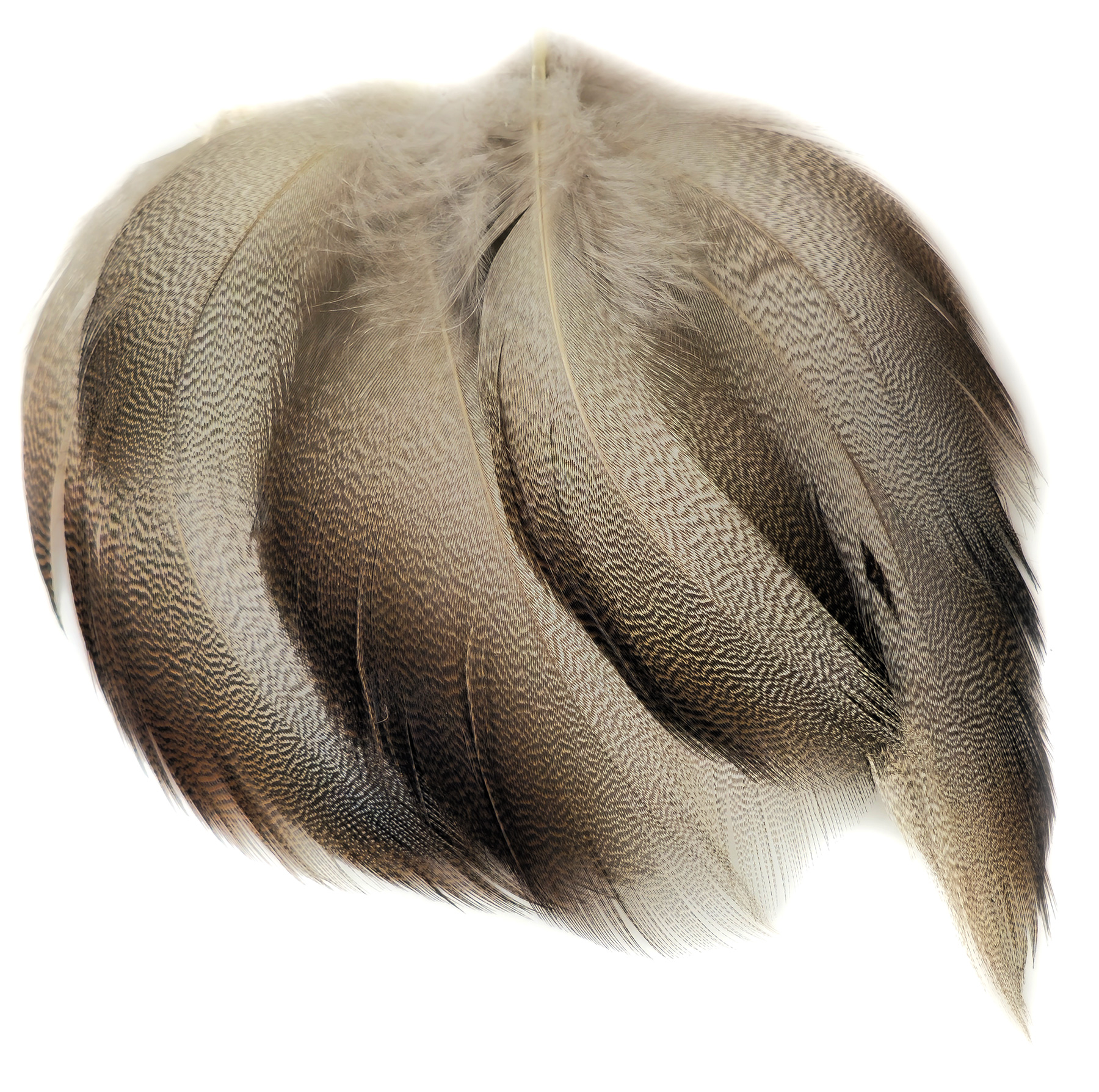 Покровные перья селезня дикой утки кряквы, взятые с боковых поверхностей тела - традиционный материал для вязания форелевых, хариусовых и "общеупотребительных" мушек. Используются так же при вязании лососевых мушек. Перья отличаются ярко выраженной поперечной исчерченностью, имеют черно-белую окраску. Предлагаются перья натуральной окраски и подкрашенные в различные тона (без исчезновения поперечной исчерченности).
