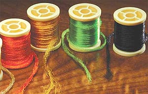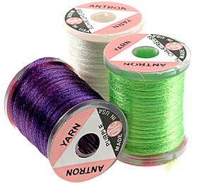 Блестящая полиамидная пряжа, состоящая из параллельных нитей и слегка волнистых волокон. Отличный материал для обвязки верха сухих "парашютов". Флуоресцентные цвета обеспечивают отличную видимость, подходят для блестящей и яркой сегментации, а более естественные пригодятся для создания тела или хвоста. Такая же пряжа выпускается в намотке на картоне.