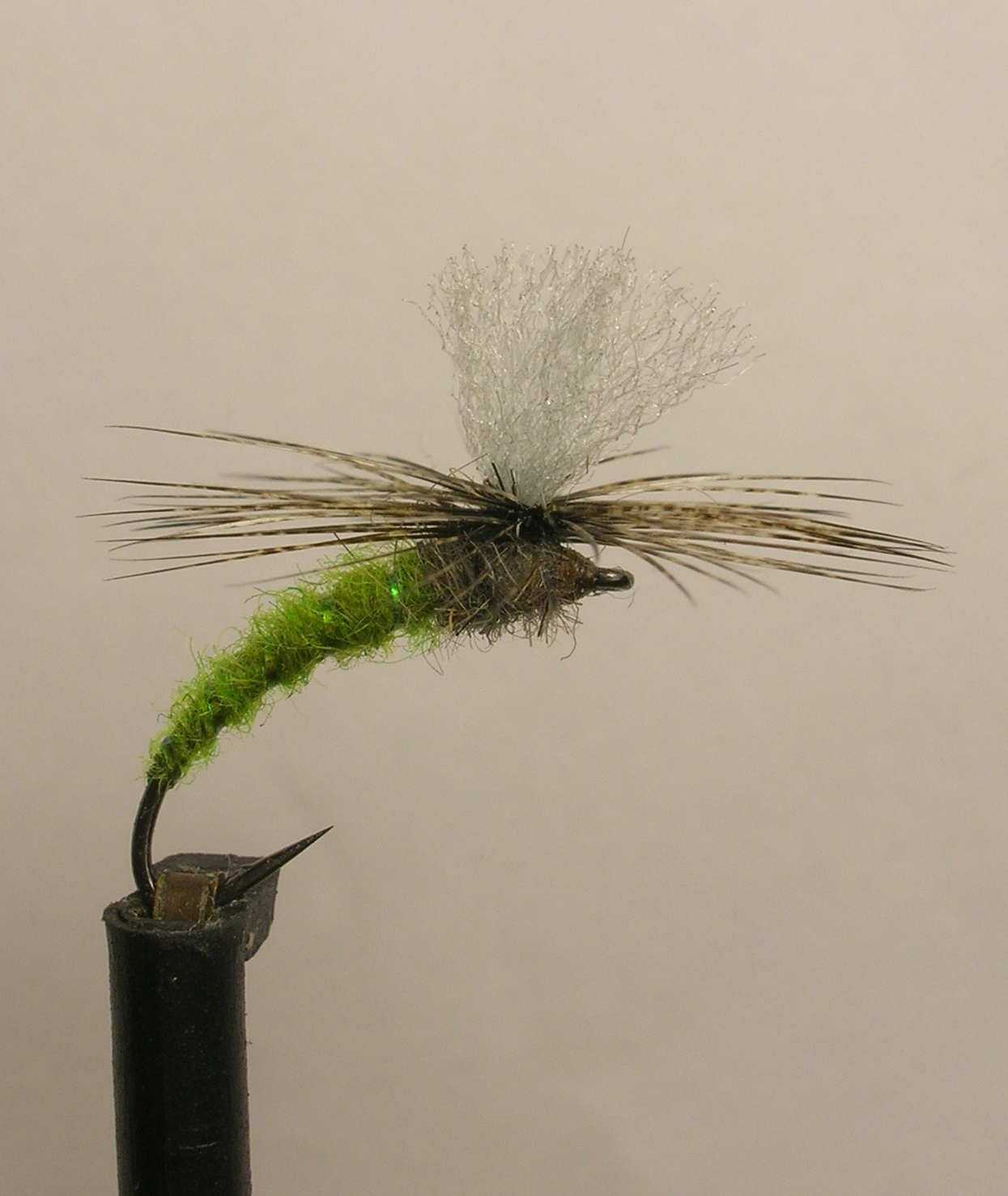 Синтетические слегка волнистые волокна пропитанные перманентным флотантом Water Shed. Подходит для экзоскелетов эмеджеров и мушек связанных в стиле "парашют", также для крылышек у сухих мушек и проч. Можно использовать для изготовления индикаторов поклевки.