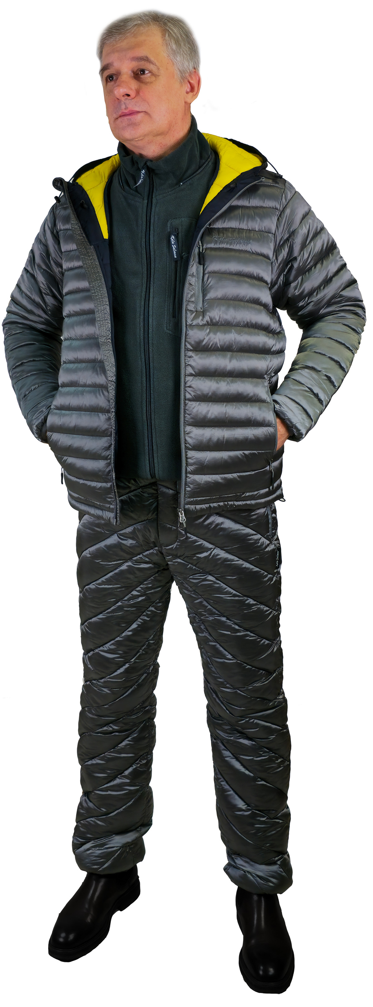 К более теплой туристической одежде безусловно относятся "дышащие " стеганые штаны на синтетическом водоотталкивающем утеплителе. Применяются как самостоятельная внешняя одежда для туризма, так и как поддевка под мембраннве брюки или вейдерсы в условиях максимально холодной воды на рыбалке.