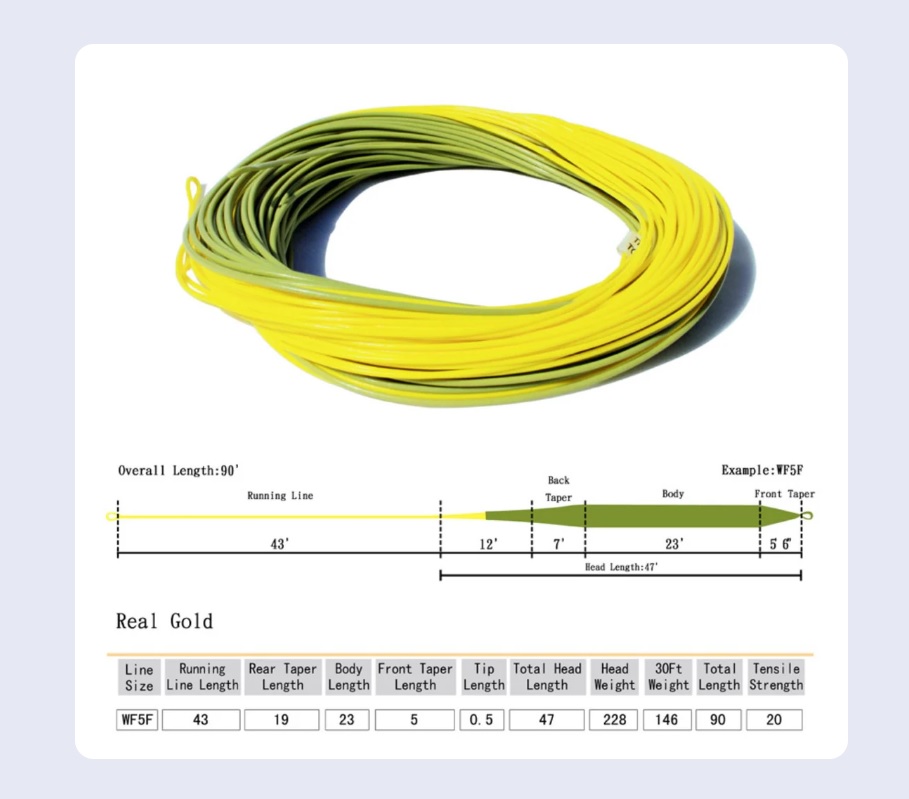 Real Gold Fly Line — это высококачественный универсальный плавающий шнур для ловли форели. Позволяет производить дальние и точные забросы как маленьких, так и больших мушек. Снабжен 2 сварными петлями.