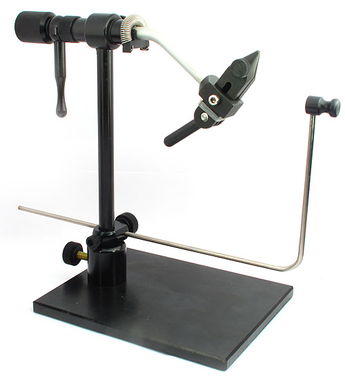 Из недорогих тисков это, пожалуй, самая удобная модель. Крючок в ней зажимается за счет упругости изогнутых навстречу друг другу губок. Длинный рычаг поворачивающий клинышек позволяет в одно движение вынуть или перевернуть крючок, за него же удобно поворачивать губки относительно их оси. Так же меняется наклон губок и в некоторых пределах высота ножки тисков.